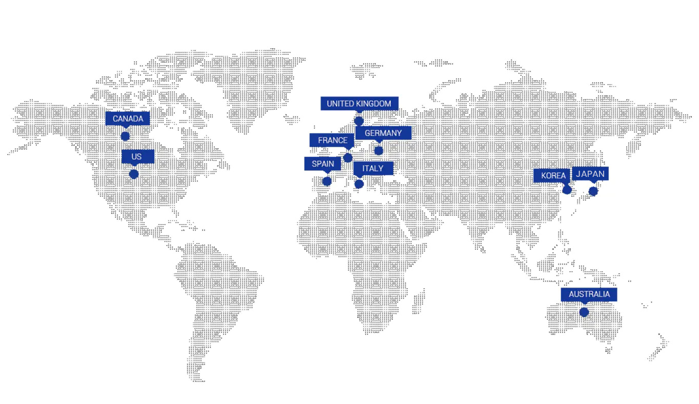 Deutschland, Japan, Spanien, Italien, Großbritannien, Südkorea, Australien und Kanada.